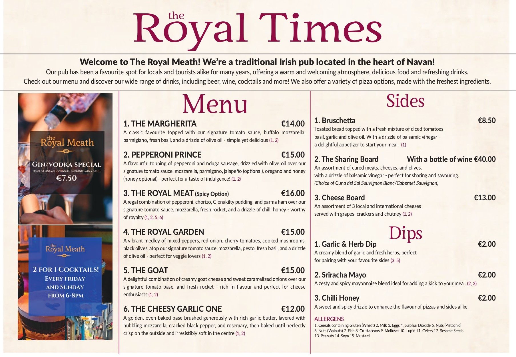 For decades, the Royal Meath Bar in Navan has been serving up the creamiest pints, the coldest glasses of white wine, the best beers and largers and now we are delighted to add a food experience with them!